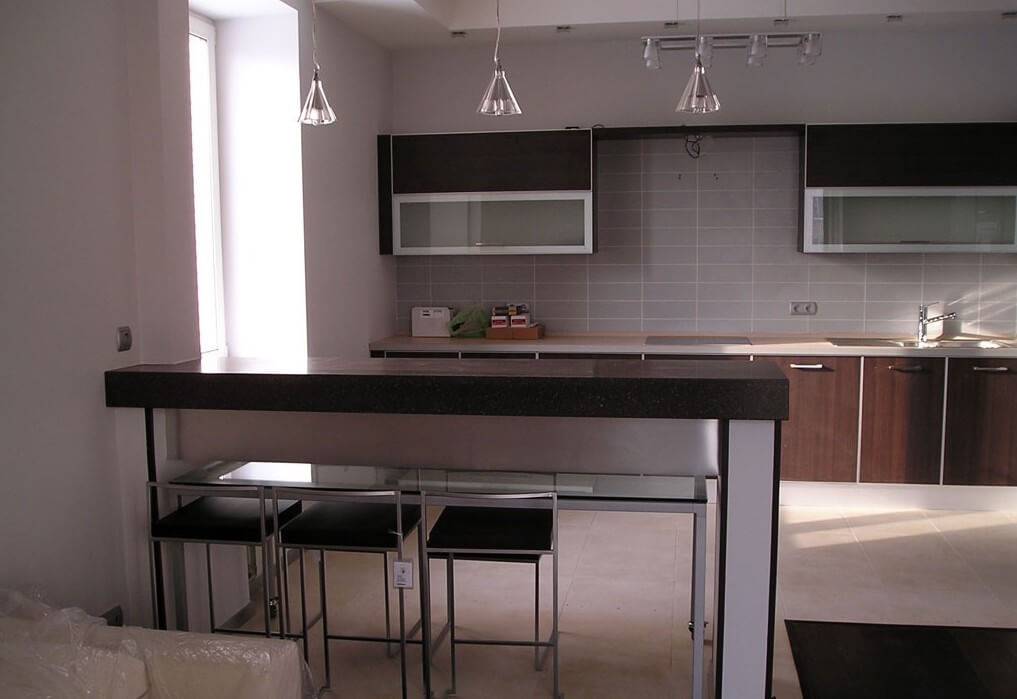 Между кухней и обеденным столом может быть невысокая барная стойка