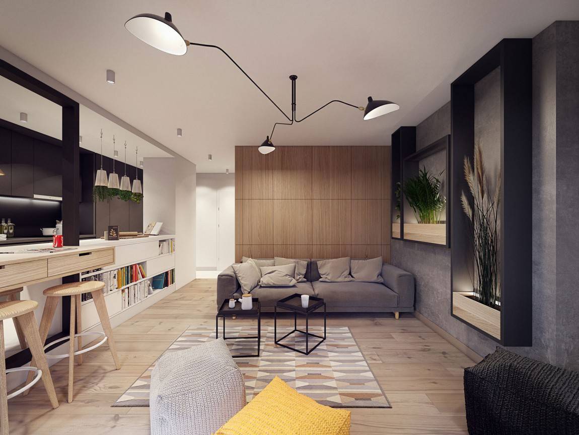 Студия такого размера практически не ограничена в выборе стиля, и дизайн гостиной 25 кв. м может быть разным. В российских студийных интерьерах крайние стилевые решения встречаются редко, распространён современный стиль. Почти невозможно увидеть кухню-гостиную в стиле хай-тек или эклектика. Зато популярны другие направления: