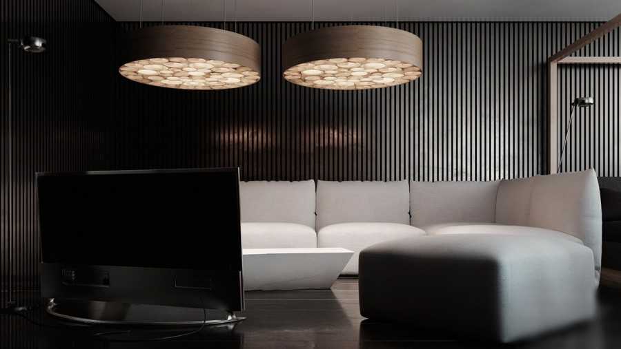 Лампы на подвесе не только создадут комфортную обстановку, настраивающую на приятный отдых, но и в случае необходимости помогут совершить деликатное зональное разделение пространства.