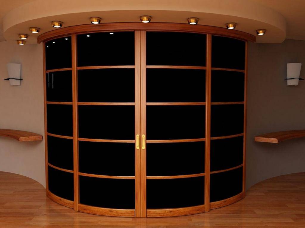 Раздвижные двери бывают прямыми и радиусными (когда дверные створки выгнуты полукругом). В такие двери обычно вставляют полотно из стекла. Самый распространённый вариант – душевые кабины.