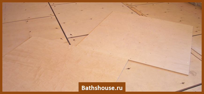В результате активного воздействия влаги фанера может начать коробиться. Чтобы минимизировать деформационные изменения, большие листы рекомендуется разрезать на 4 части. Они укладываются стандартным способом, между элементами оставляются зазоры.