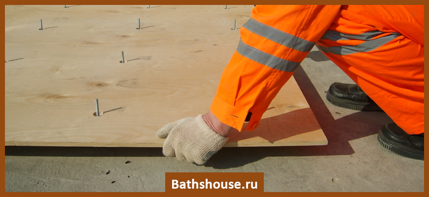 Укладывая фанеру на пол из бетона, согласно советам специалистов, следует между черновой основой и лицевым покрытием укладывать влагоотталкивающие ее виды. Промежуточный слой из качественного материала позволит не допустить в будущем деформаций, вызванных появлением временной или постоянной повышенной влажности.