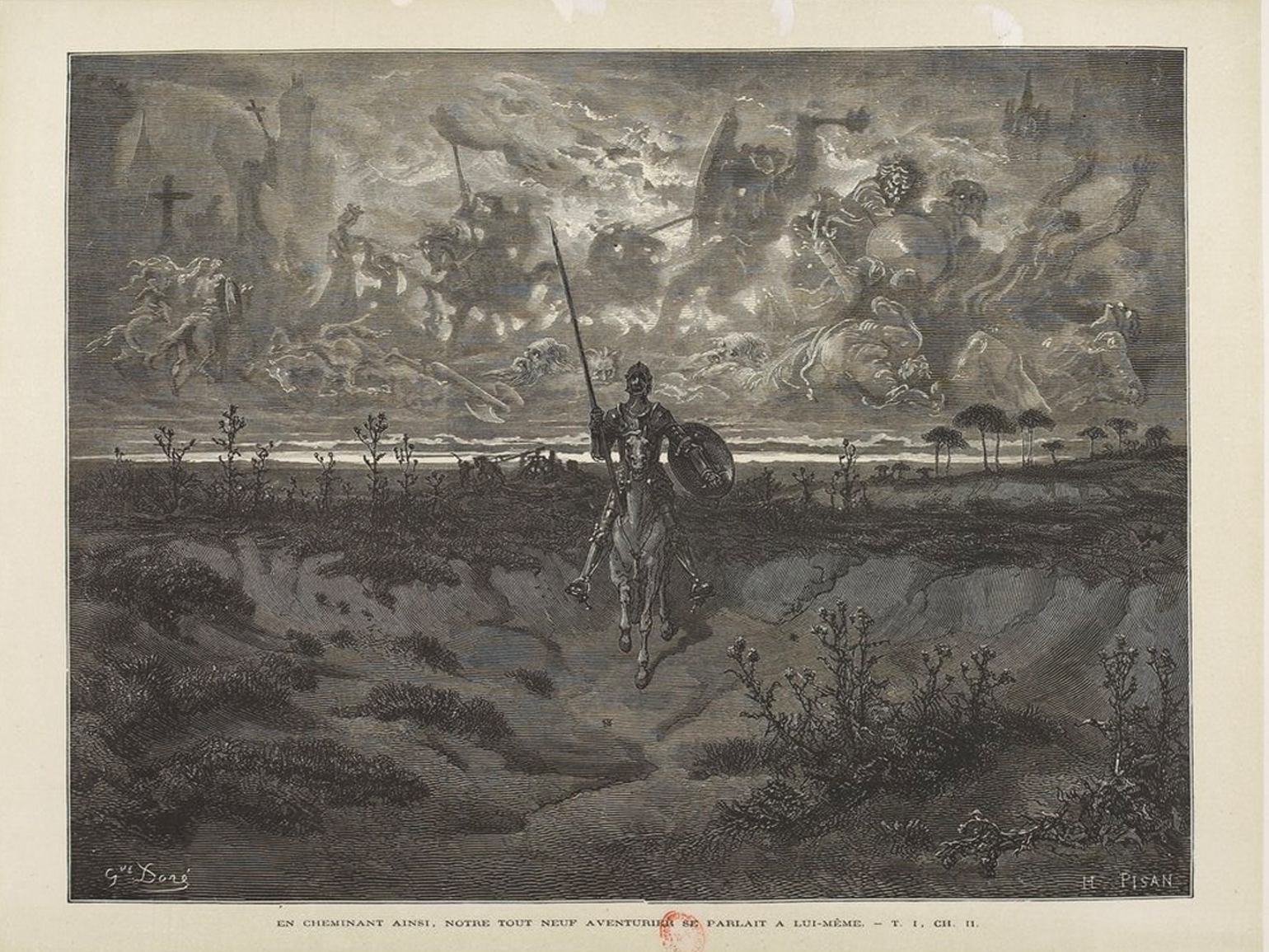 Гюстав Доре сделал 377 иллюстраций к роману Сервантеса, а мастер Элиодор Пизан выгравировал их в технике ксилографии.