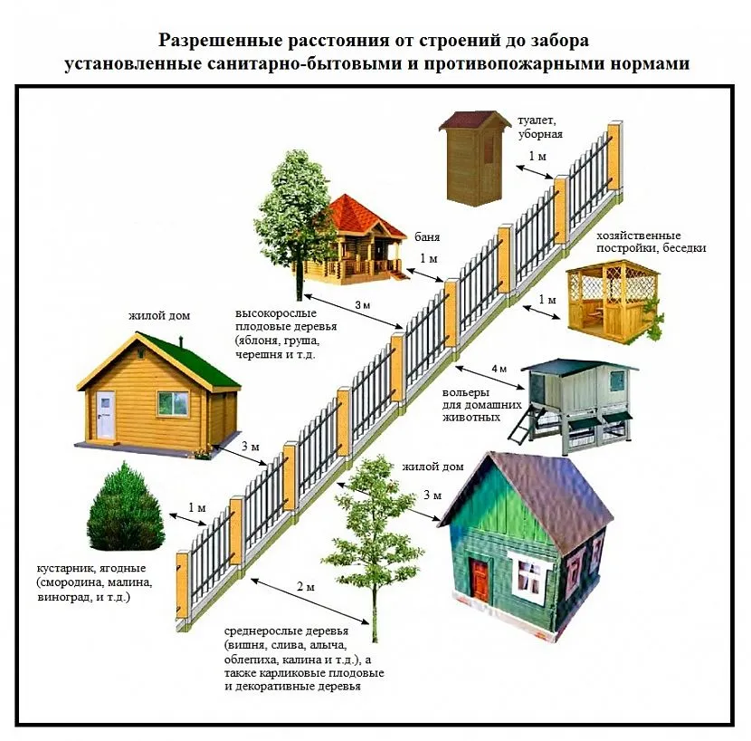 Отдаленность насаждений и построек от забора Источник zagolovki.com.ua