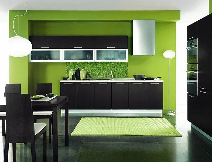 Кухня. В этом помещении зеленый цвет всегда уместен. Цвет салата может присутствовать в текстиле, декоративных элементах, отделки или мебели. В сочетании с коричневым, желтым или бежевым этот цвет положительно влияет на аппетит.