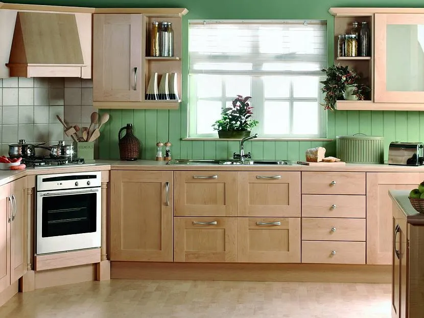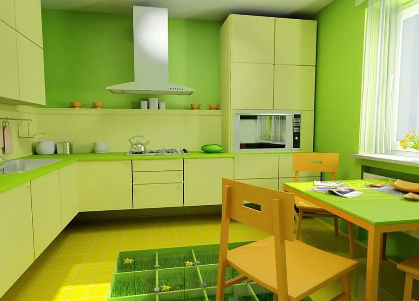 Салатовый. Броский летний оттенок, ассоциирующийся со свежестью. Салатовый цвет отлично подходит для кухонь, поскольку заряжает позитивом;