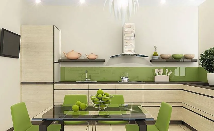 Лаймовый. Это необычный зеленый оттенок с желтоватым отливом. У него есть схожесть с салатовым, а, значит, он подходит для кухонь, наполняя атмосферу позитивом и динамичностью;