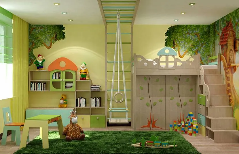 Для детской комнаты недопустима кислотная, кричащая и яркая зелень. Идеальным для детского зрения станут желто-зеленый или светлый цвет. Такие элементы смогут пробуждать активность и способность к умственной деятельности. В подростковой комнате могут перекликаться более агрессивные и темные оттенки: бирюзовый, салатный, болотный. Это дает возможность самовыражения и создания своего отдельного микромира. Главное – использовать зеленые оттенки в малогабаритной комнате в небольших количествах, дополняя их правильным освещением.