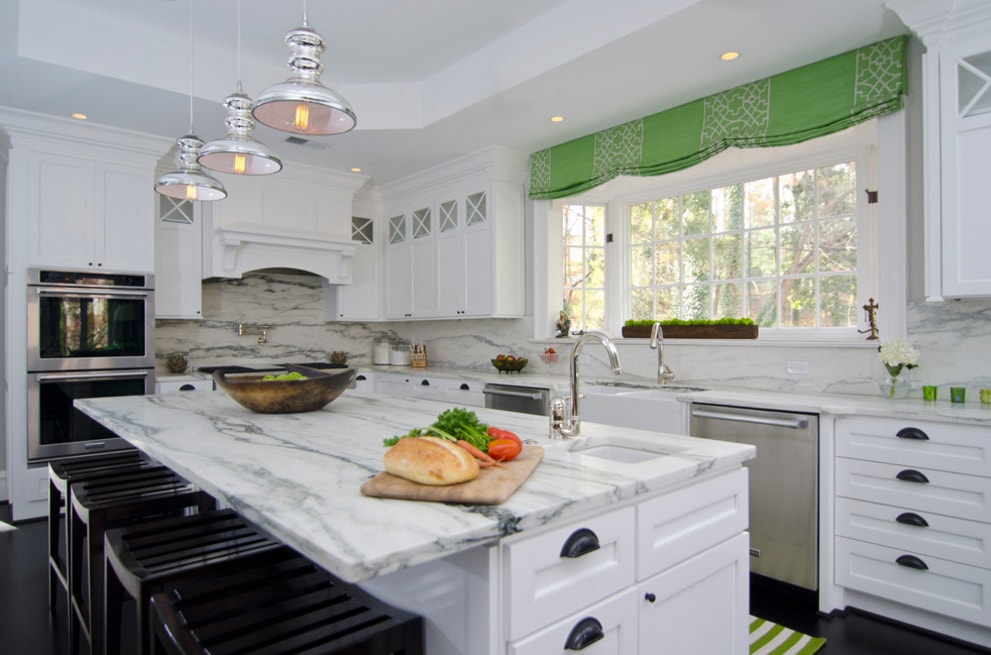 Очень красиво смотрятся зеленые шторы в помещении белого цвета. Но нужно выбирать не слишком яркие оттенки, чтобы сочетание не было слишком контрастным. Спокойные, светлые тона зеленого гораздо лучше подойдут.