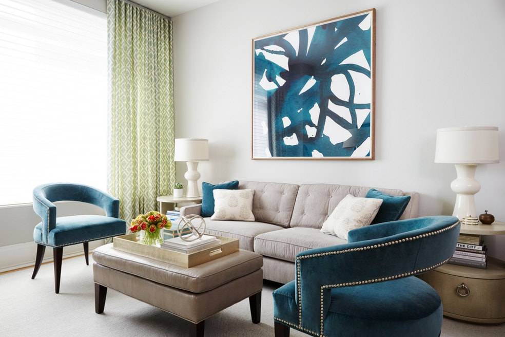 В то же время очень важно соблюдать баланс, чтобы гостиная не была слишком темной или светлой. Намного лучше смотрится нейтральный дизайн с яркими акцентами в виде штор зеленого цвета