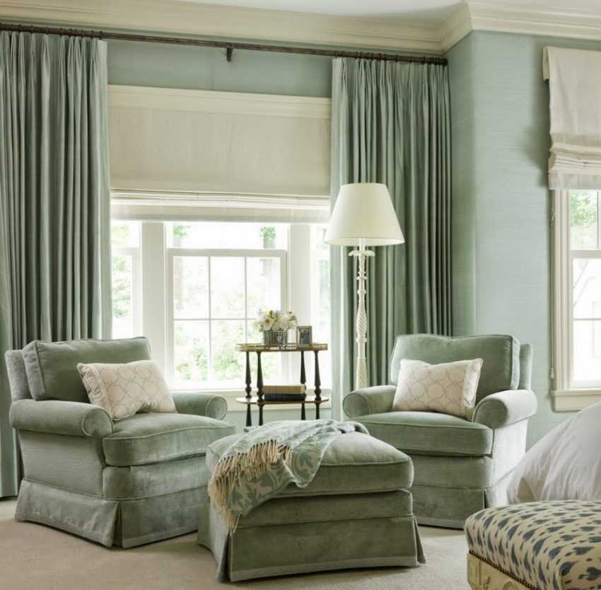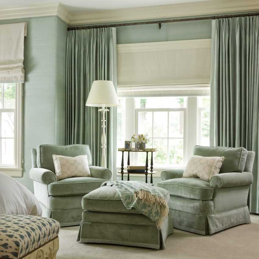 Оттенок средиземноморских фисташек привлекает внимание. От правильного подбора тона занавесок зависит общее впечатление от помещения