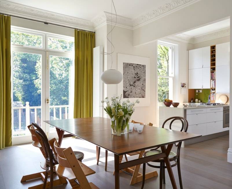Выбор цвета штор: зеленые шторы. Несмотря на то, что зеленый цвет штор чаще используется в гостиных, мягкие оттенки зеленого подойдут и для столовых комнат. Этот цвет успокаивает и настраивает на умиротворение, поэтому зеленые шторы можно повесить и в спальню.