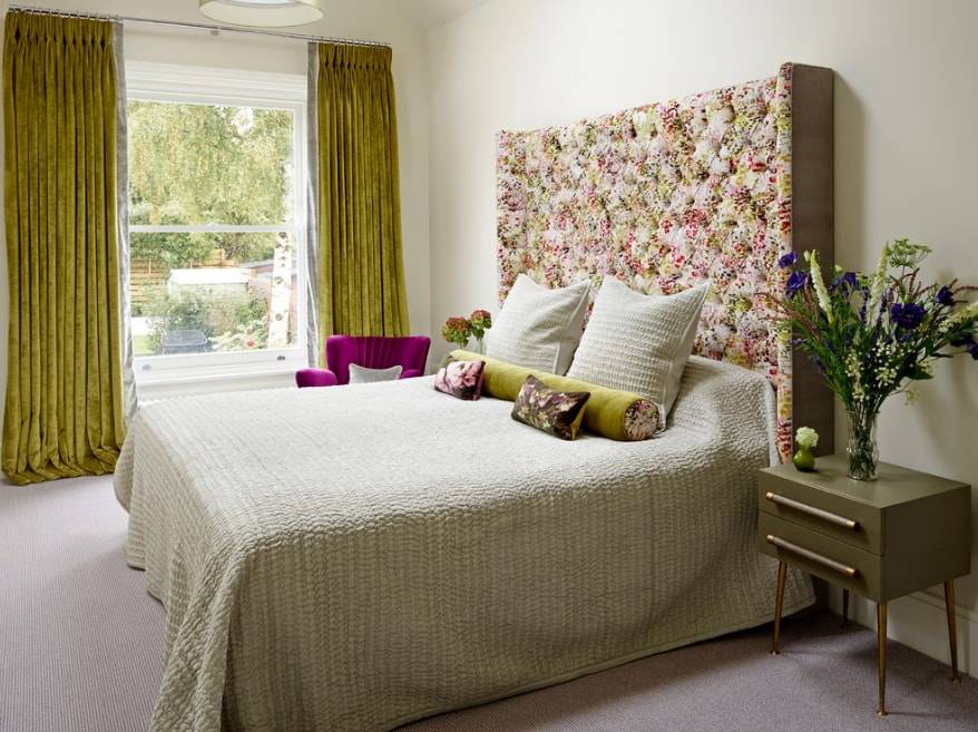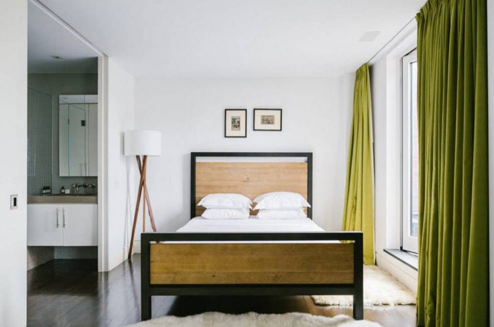Не следует выбирать занавески слишком ярких оттенков. Никаких кислотных или ядовитых тонов, ведь для спальни важна спокойная атмосфера. Поскольку шторы являются отдельным элементом декора, они могут быть и нефритовыми, и изумрудными, и цвета мяты.