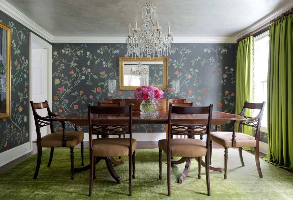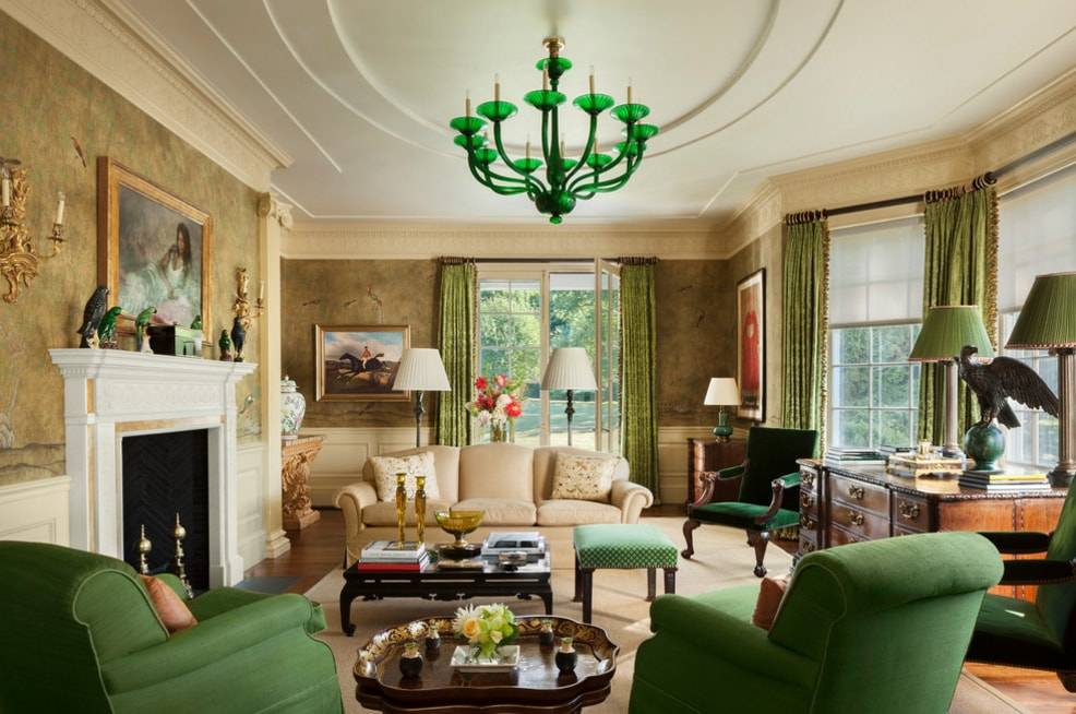 Чаще всего зеленый цвет встречается в английских классических интерьерах, но это не значит, что его нельзя брать в других направлениях. Сочетай его с темной бирюзой, винным или кобальтовым на фоне бежевых стен или деревянной мебели. А еще зеленый гармонирует с золотой вышивкой, кистями, бахромой, подхватами и фурнитурой.