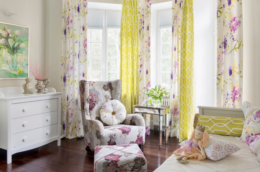 Желтые шторы хороши для детской комнаты, особенно если ее окна выходят на северную сторону. Психологи рекомендуют вешать «солнечные» шторы в комнату меланхоличного ребенка.
