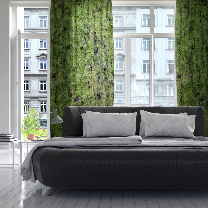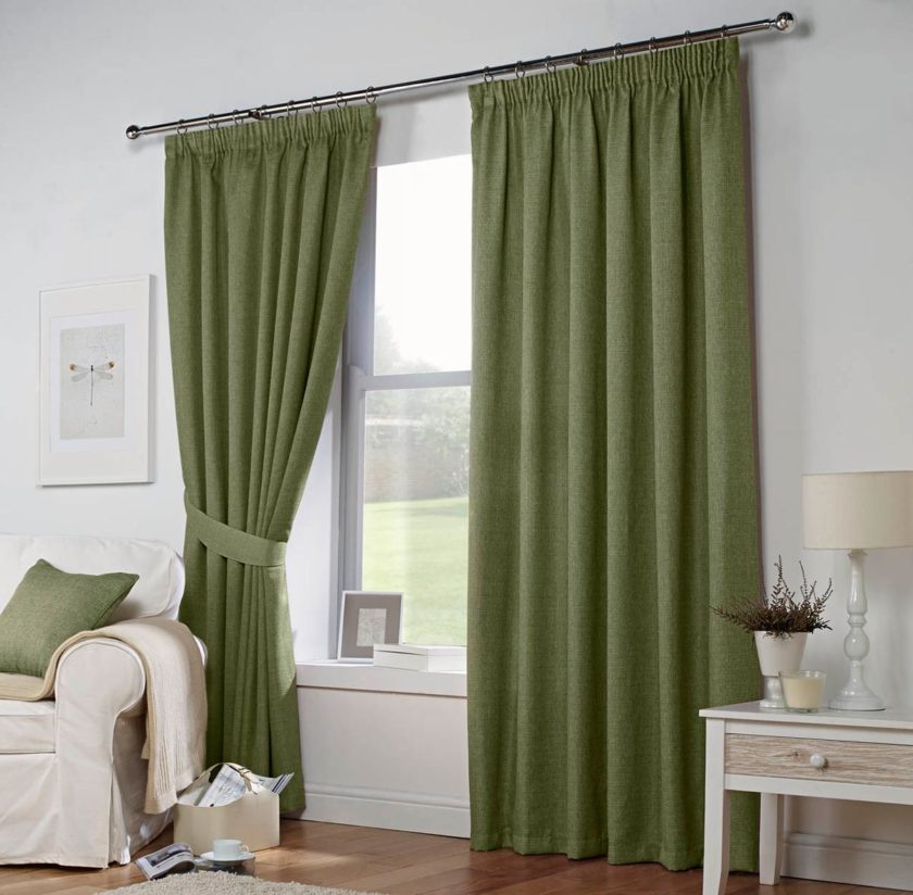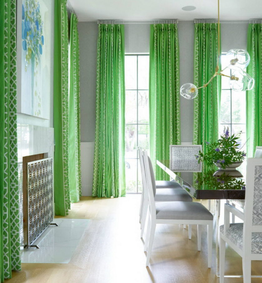 Зеленые шторы замечательно гармонируют с такими цветами: ахроматические — черный, серый, белый. Также отличную компанию составит коричневый, песочный и их оттенки.