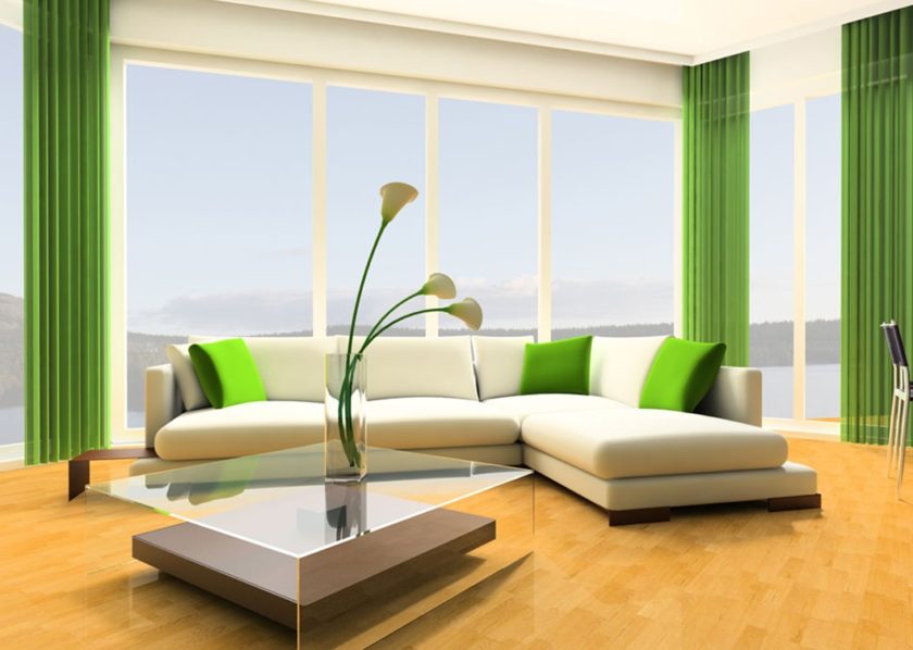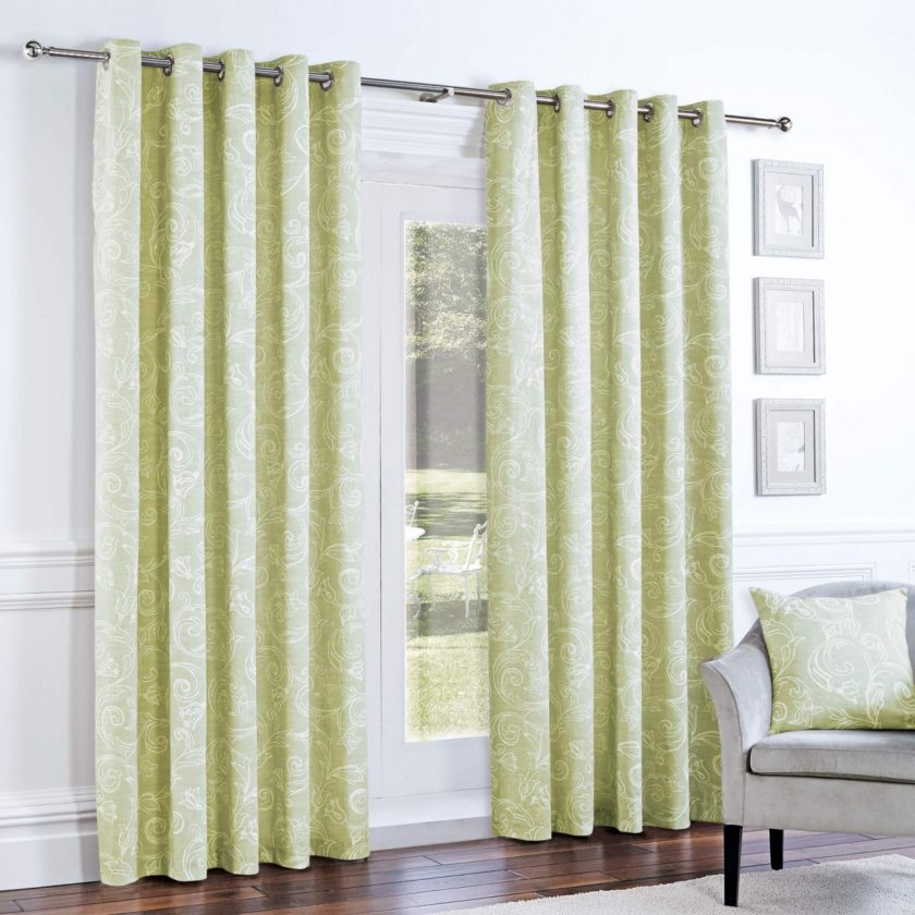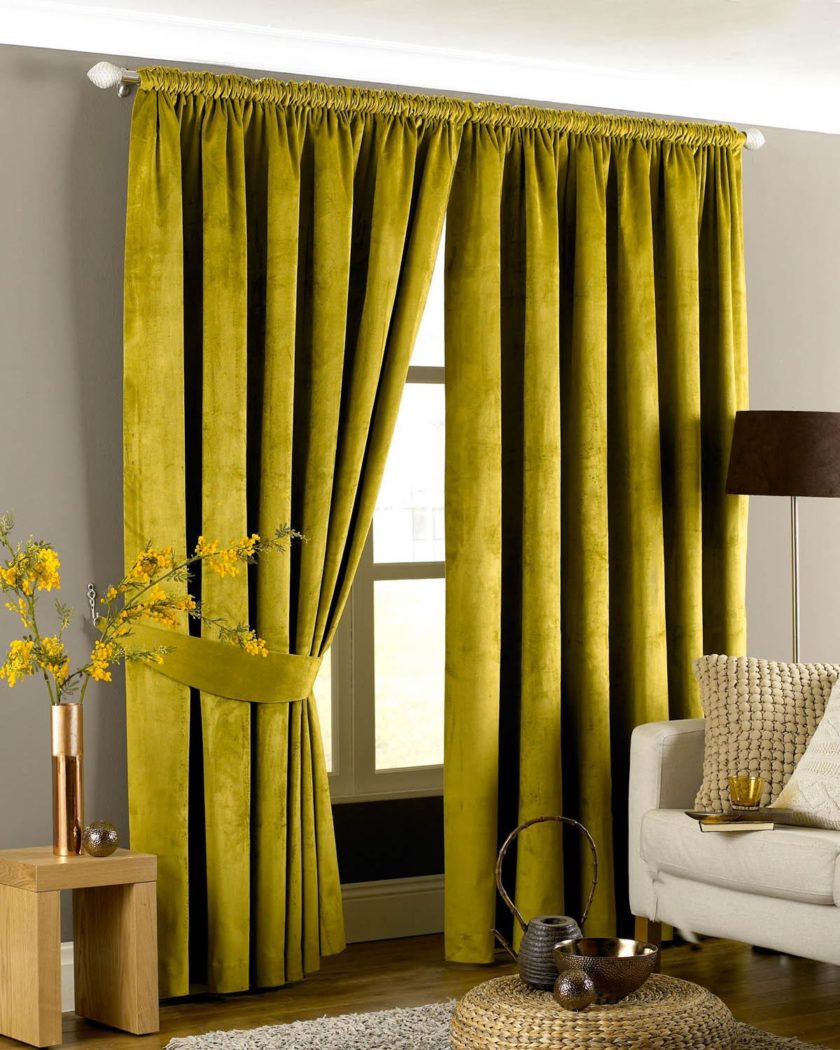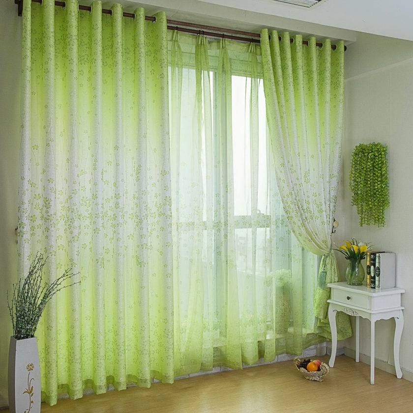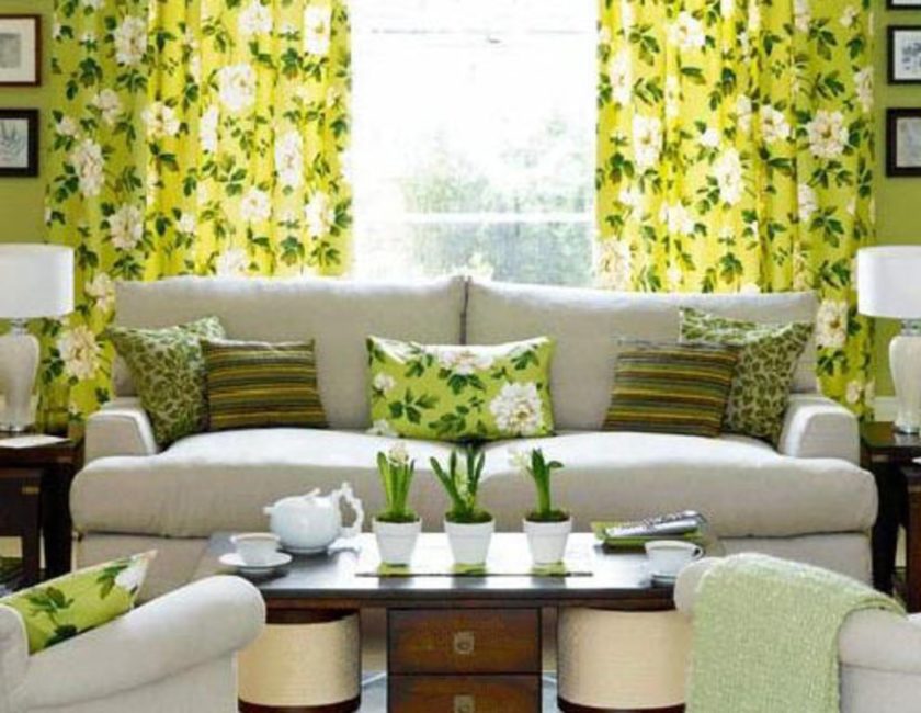 Например, зелено-желтые шторы подойдут для оформления интерьера, в котором отделка была выполнена не в желтом цвете. Поскольку в таком случае оконный проем будет выглядеть меньше, чем он есть на самом деле.