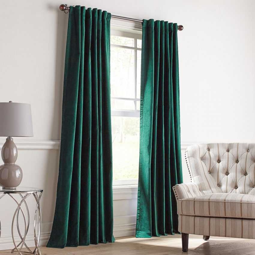 Как правило, темно-зеленые шторы изготовлены из плотного и фактурного материала. Ткань такого типа делает любой оттенок, даже самый светлый, более густым и темным.