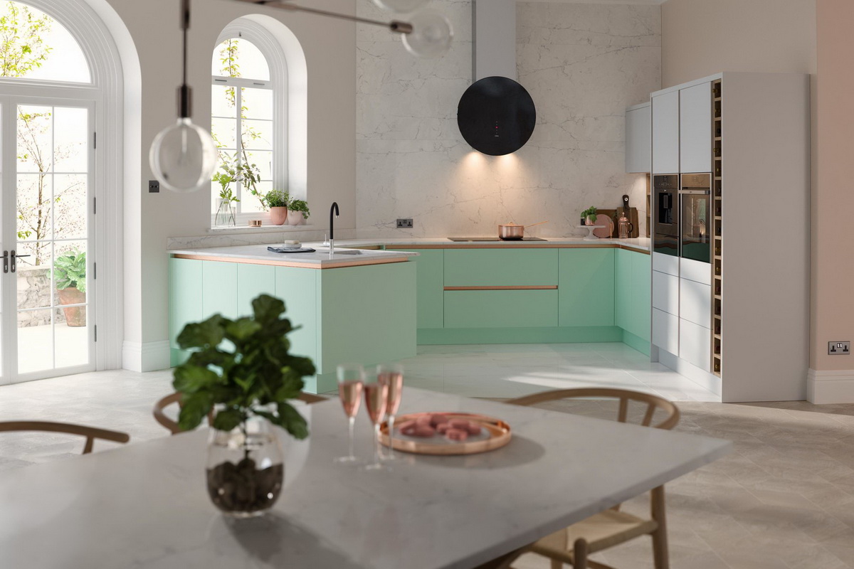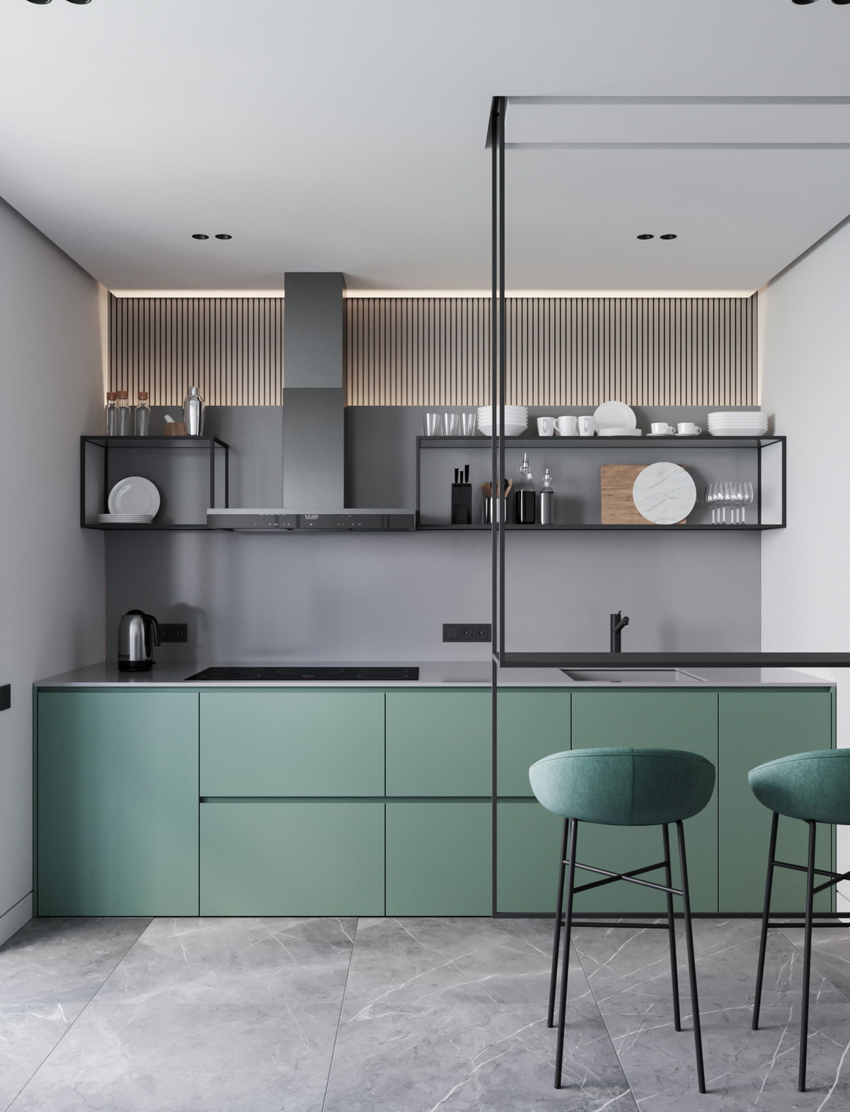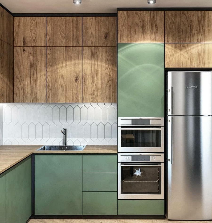 Салатовый имеет несколько оттенков, он может быть ярче или бледнее, чуть светлее или темнее. От подбора правильного тона зависит всё восприятие дизайна кухни