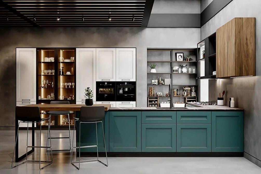 Этот цвет – истинный фаворит. Глубокий, насыщенный – он выглядит изысканно и благородно. Изумрудная кухня способна вписаться даже в классический стиль, но при этом не менее эффектна будет и в реализации современных стилей.