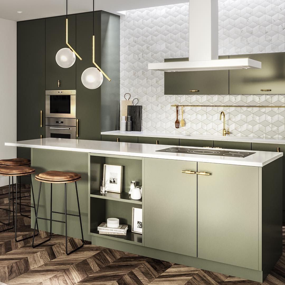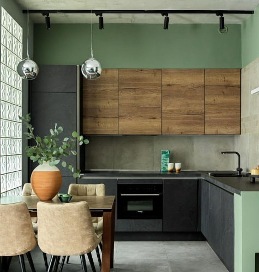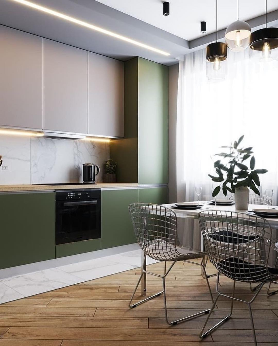Зеленый — это естественный цвет, который хорошо сочетается с различными оттенками кремового и коричневого. Благодаря такому сочетанию цветов вы придадите своей кухне органичную атмосферу, которая не требует усилий и расслабляет.