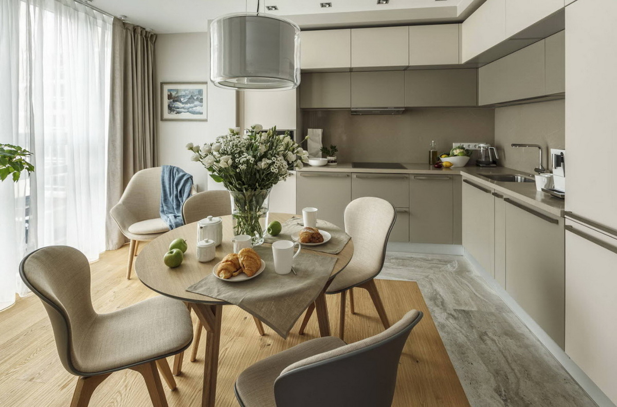 Светлые тона делают кухню изысканной и выглядящей изящно, а обстановку в ней – свежей. Кроме того, они «добавляют» помещению несколько квадратных метров и поднимают настроение жильцам.