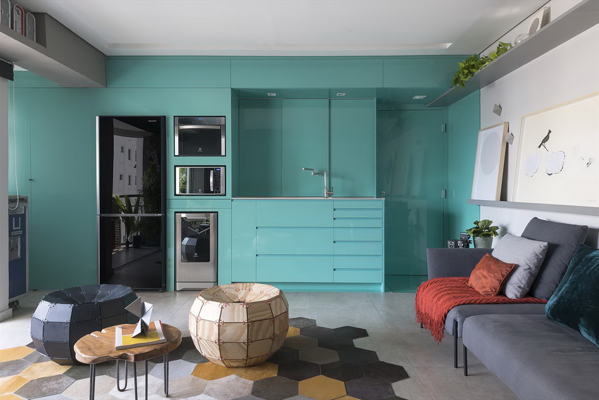 Бирюзовый цвет помогает создать свежую атмосферу комнаты. При том, что он выглядит достаточно дорого, он не перегружает общий вид помещения. Этот цвет обладает целым рядом преимуществ: