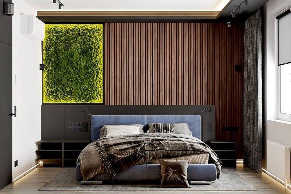 Причем использование природного цвета не ограничивается живыми растениями в горшках. В таких пространствах стали популярны «живые» акцентные стены, украшенные фитокартинами из мха.