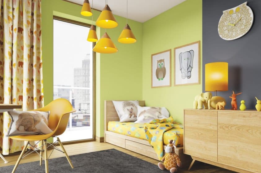 Преобладание лимонного оттенка в детской комнатеИсточник mainavi.ru