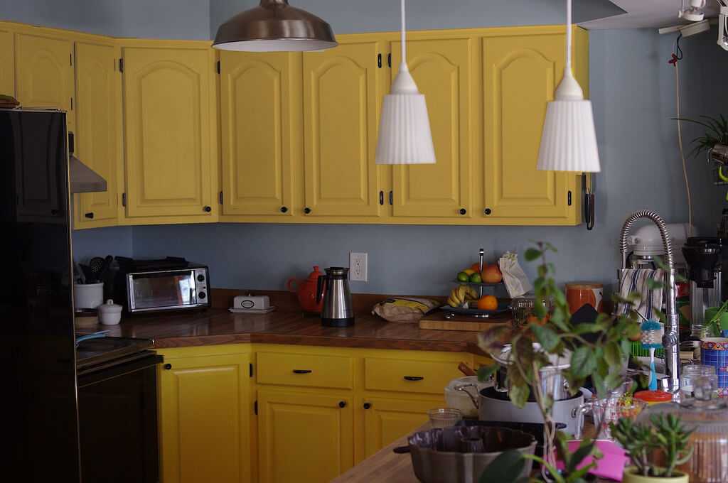 Выберите янтарный цвет для стен, который достаточно интенсивен, чтобы выделиться из шкафов. Это позволит воплотить идею желтой кухни независимо от тона остального пространства.