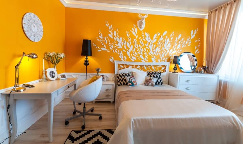 Желтый цвет и его оттенки сильно влияют на эмоциональное состояние. Чрезмерное количество тона в комнате приведет к агрессии, неуравновешенности и нервозности.