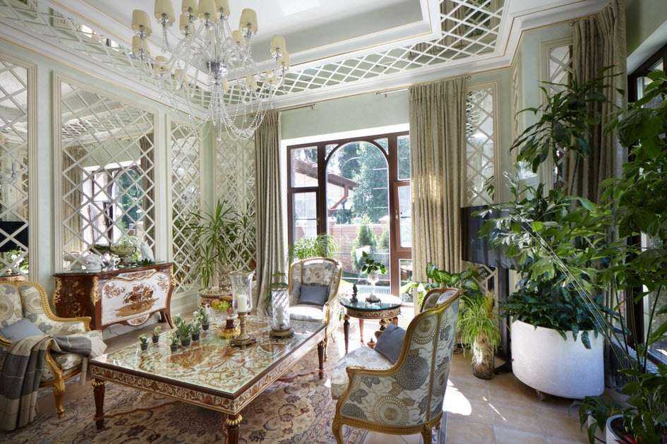 - Свет электрических ламп, отражаясь и преломляясь в многочисленных зеркалах, будет разбегаться по комнате причудливыми солнечными зайчиками, играть в зеркалах трюмо и других подобных поверхностях, увеличивая количество света в комнате.