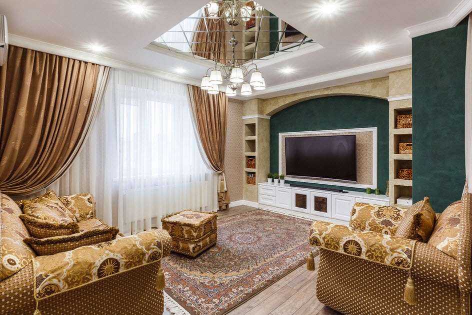 Многочисленные фото зеркальных потолков в гостиной, спальне, выполненных с такой отделкой, позволяют оценить их красоту.