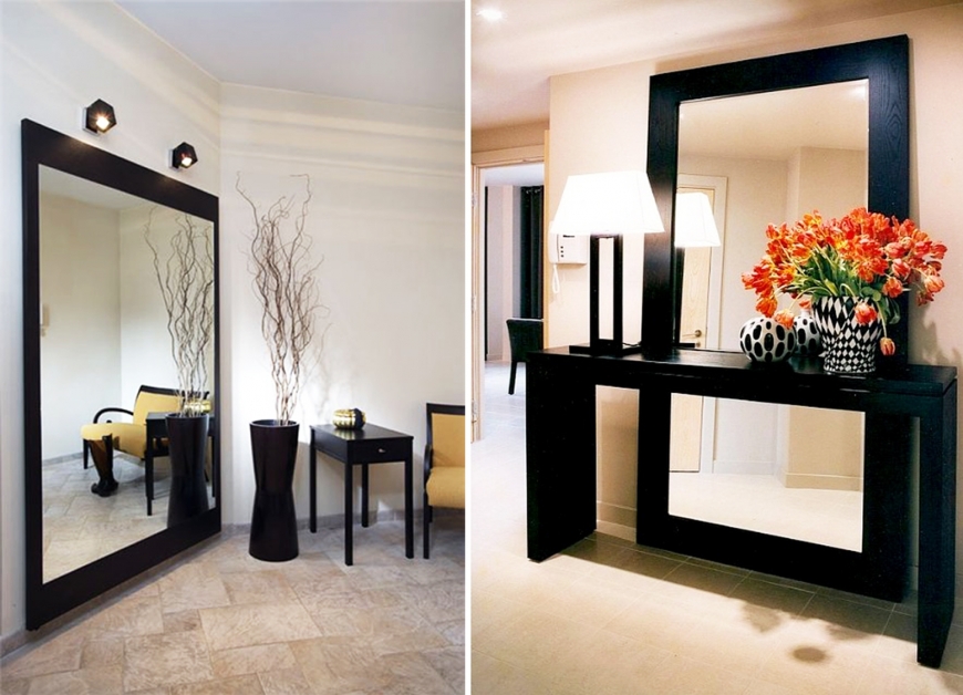 Зеркалами оформляют дом для прямого его назначения и в целях украшения жилого пространства, так как они помогают внести максимум изменений. К примеру, посредством большого зеркала можно удачно удлинить прихожую, поднять потолочную поверхность, либо зрительно увеличить зал.