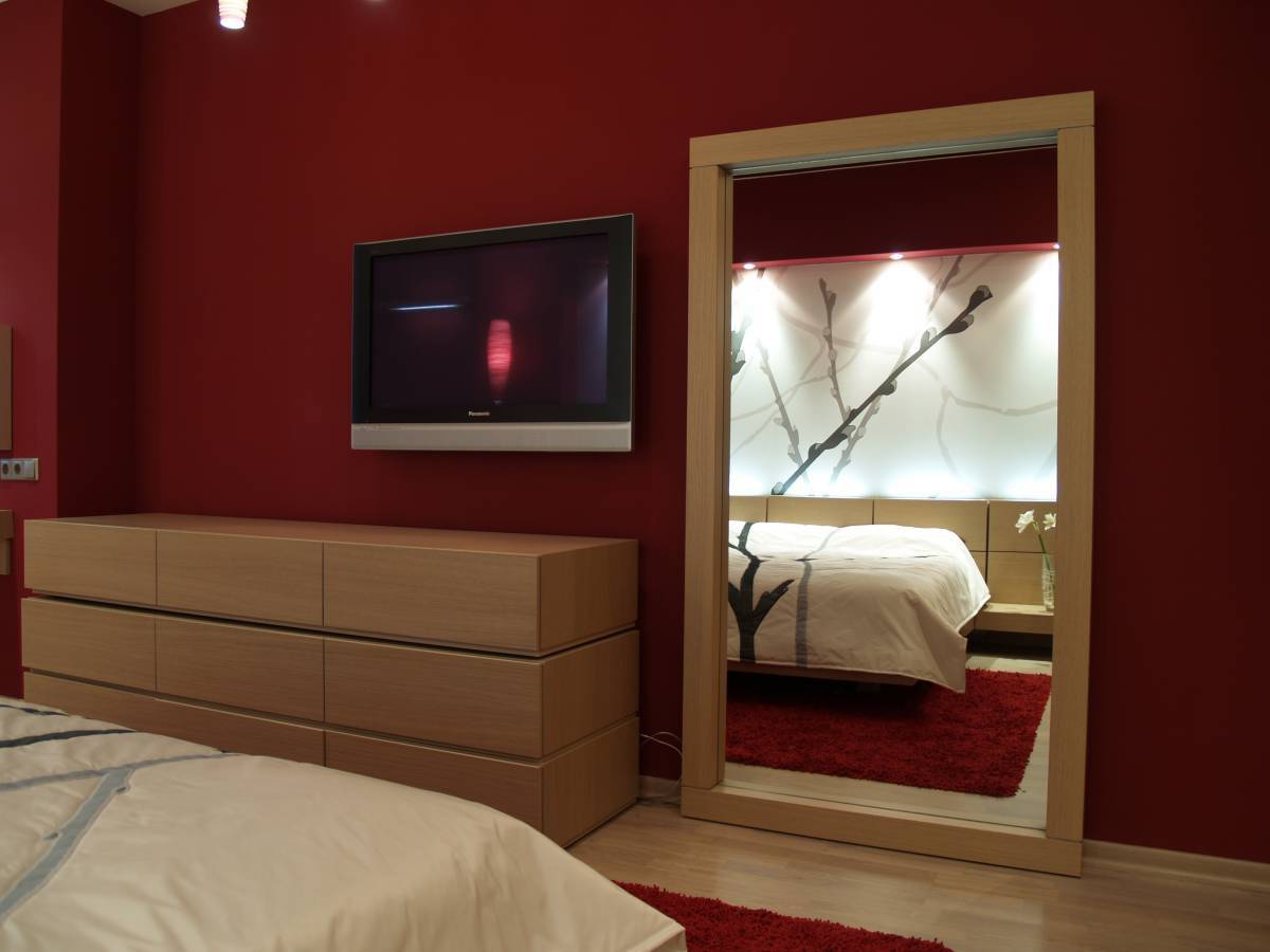 - зеркало в спальне во весь рост нужно располагать выше на 10—15 см, чем величина глядящего в него человека;