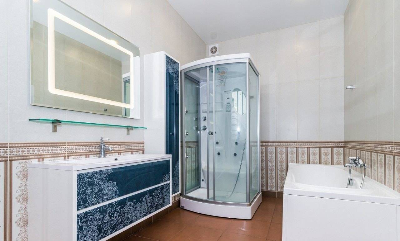 Для любителей расслабляющих ванн, подойдет установка одного или двух приборов с приглушенным рассеянным свечением. С помощью светодиодной подсветки также можно оформить саму купальню по периметру или при недостатке освещения разместить несколько светильников в зоне душа. Лучшим вариантом для зоны влажности станут устройства с возможностью изменения яркости и направления светового потока.