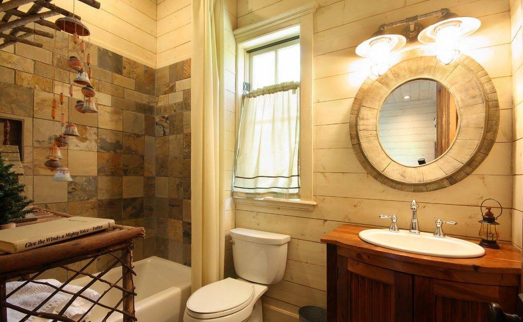 Задумались, какое зеркало выбрать в эко-ванную? Попробуйте оформить его ветками дерева. Последние должны быть сухими, зачищенными от коры и покрытые лаком или какой-либо подходящей по цвету краской. Такой аксессуар добавит в атмосферу ванной ноток сказочности и таинственности.