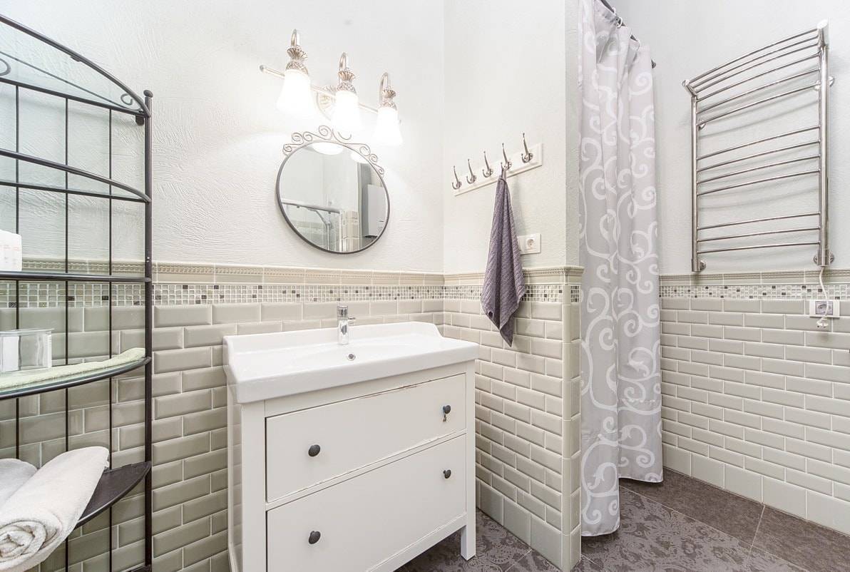 - вся фурнитура, которая находится на виду (как правило, это ручки на дверцах), должна быть в одном стиле с аксессуарами ванной, а именно крючками, полочками, полотенцесушителем, мыльницами и др.