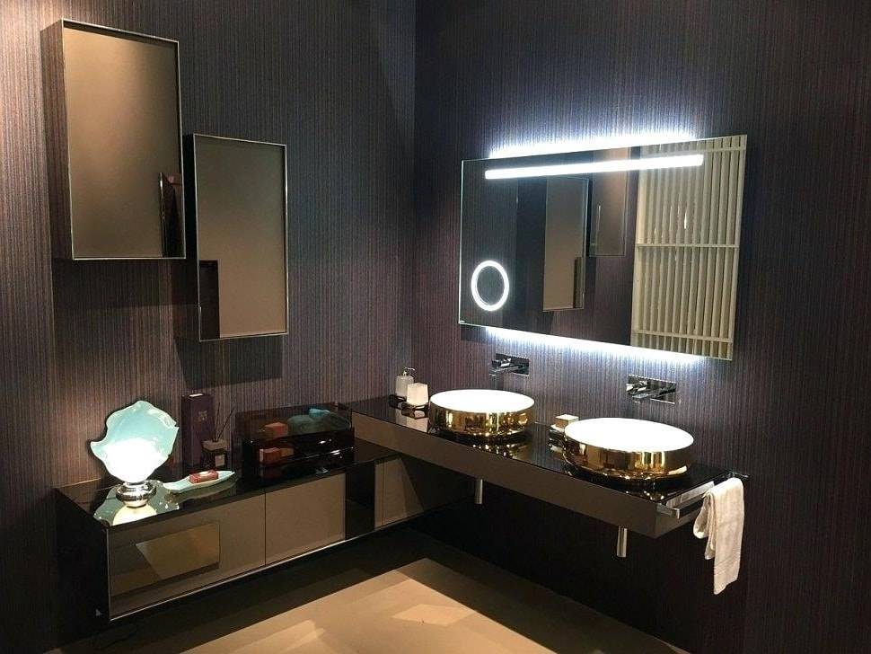 Продольная подсветка на узком широком зеркале выглядит очень изысканно