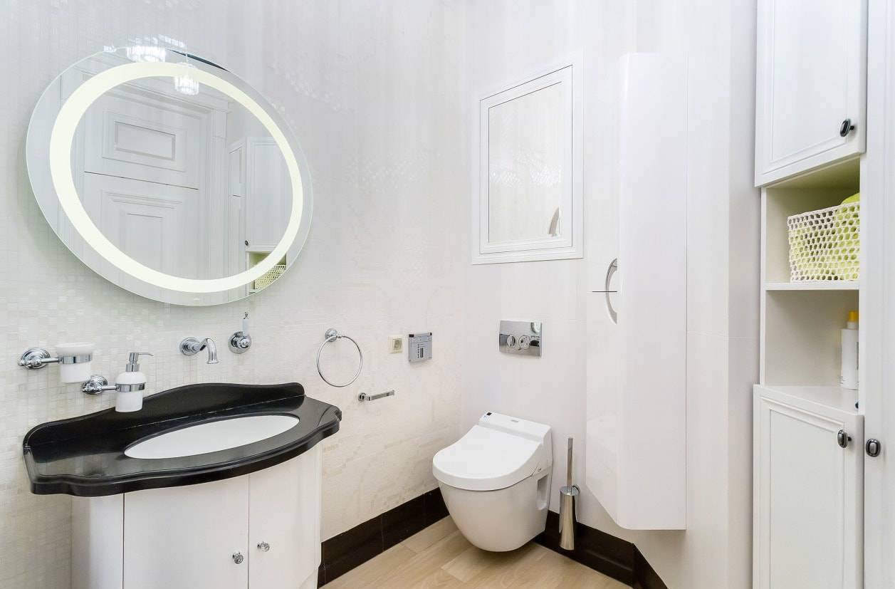 - — зеркало, в особенности с подсветкой, усиливает освещение санузла.