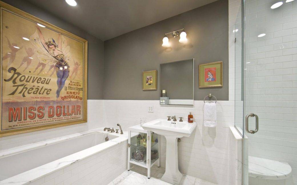 Если в ванной комнате установлена простая мебель и сантехника, имеется обычная ванна или душевая кабина, то можно рискнуть. Для этого многие домашние дизайнеры покупают моющиеся полотна с насыщенным и ярким рисунком. Это позволяет создать смелый, оригинальный, броский дизайн, который очень часто смотрится выигрышно.