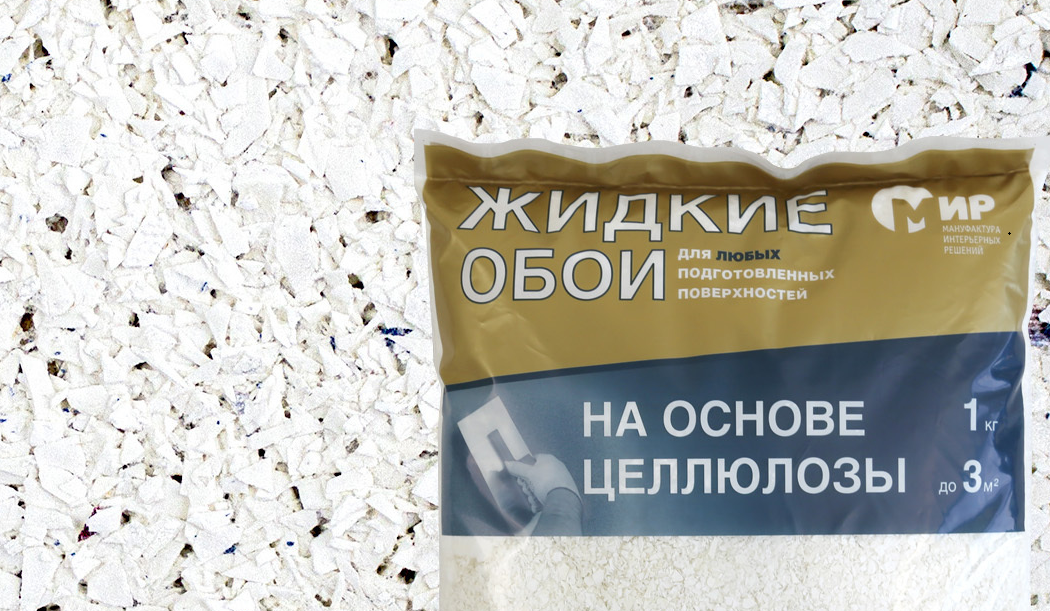 Жидкие обои продаются в виде сухой смеси, расфасованной по пакетам