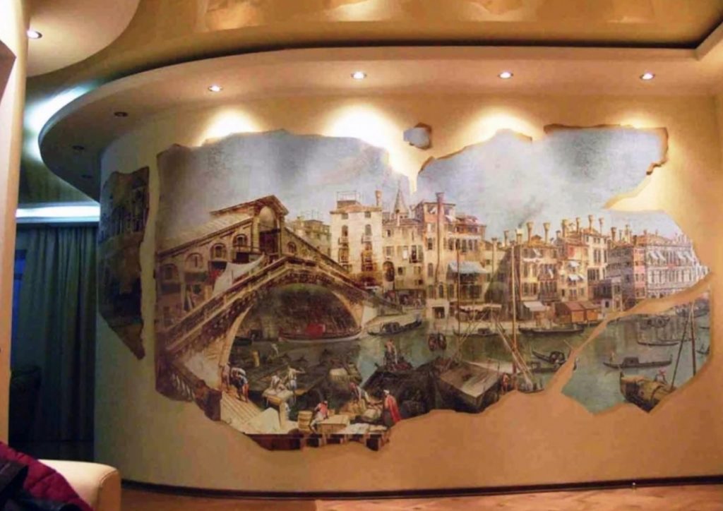 Фреска относится к разновидности монументальной живописи: ее нельзя снять, как картину, и перевесить в другое место. Чтобы фреска действительно украшала помещение, она должна стать неотъемлемой частью интерьера, гармонируя с остальными его элементами. Именно поэтому нужно заранее продумать дизайн комнаты, определиться с типом картины, которая будет изображена на стене.