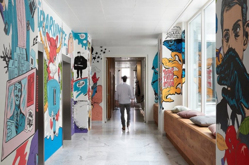 Сегодня роспись по сырой штукатурке пользуется популярностью везде. Очень часто ее можно увидеть в публичных местах, например, в кафе, ресторанах. Кому-то нравится оформлять ею свое рабочее помещение.