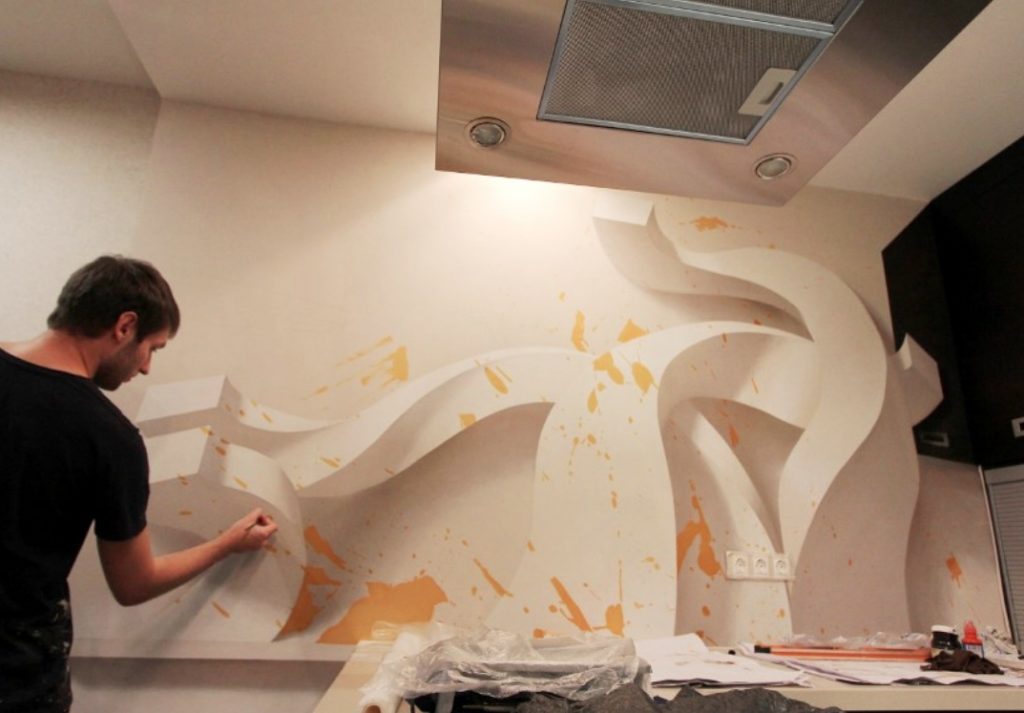 Есть и упрощенные варианты выполнения техники. При наличии сноровки и определенного опыта справиться с работой можно даже в домашних условиях. В оригинале же требуется быстрота реакций и точность мазков. Для облегчения задачи макет картинки стоит заранее раскрасить так, как это будет сделано на стене, прописать его тенями.