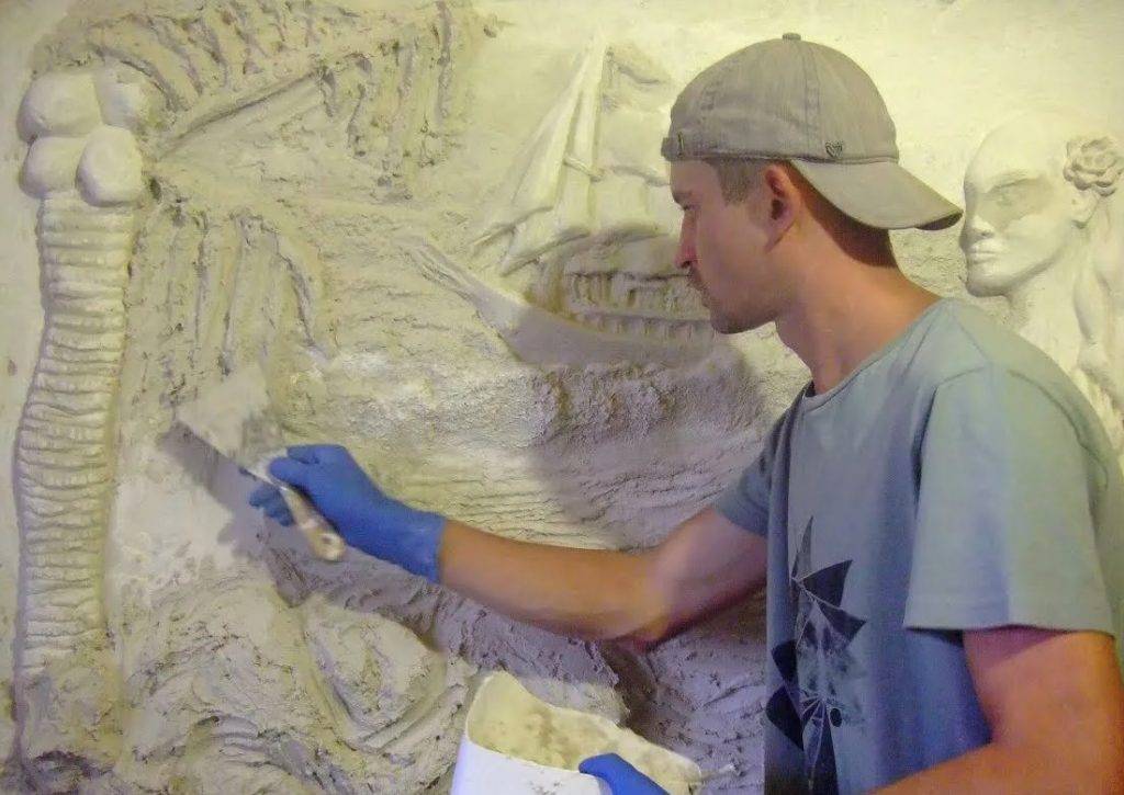 Если не уверены в своём мастерстве и художественных способностях, следует предварительно потренироваться на небольших участках. Первоначально можно на сухой оштукатуренной стене.