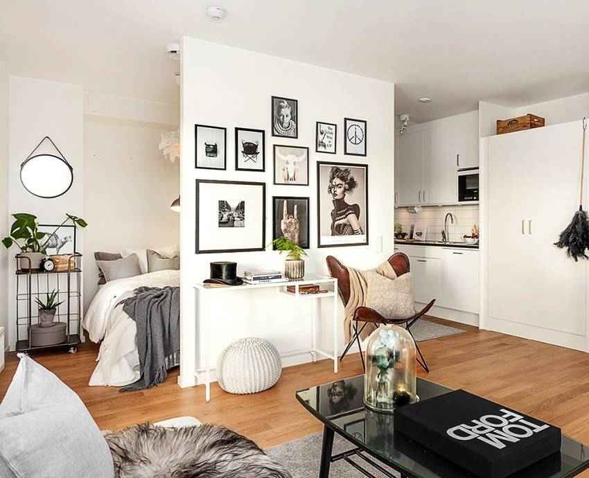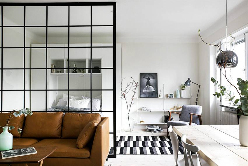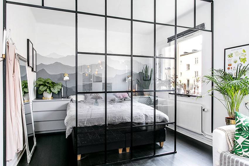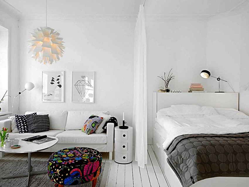 Спальня, совмещенная с гостиной: разделение стационарными и мобильными перегородками