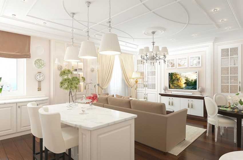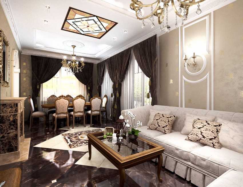 Центральным элементом гостиной может стать большая хрустальная люстра. Она способствует привлечению положительной энергии. Люстра будет давать достаточное освещение для активации всех зон.