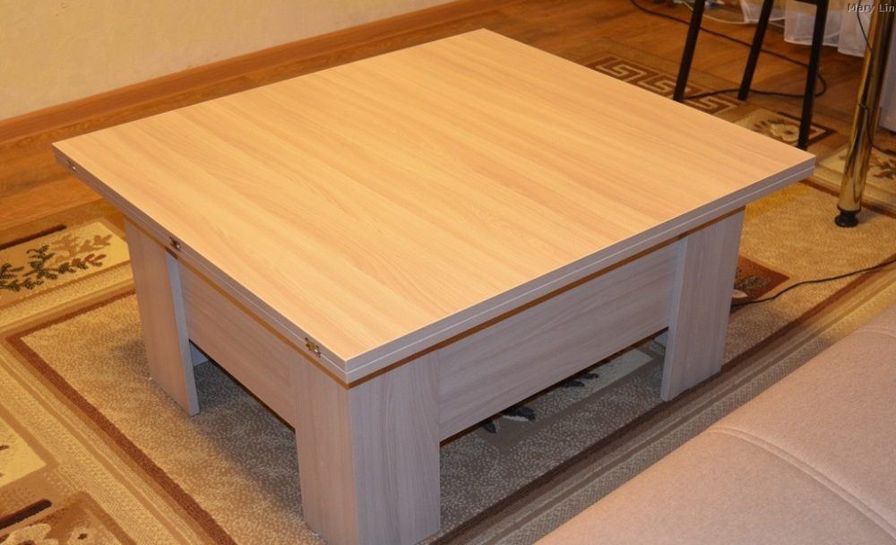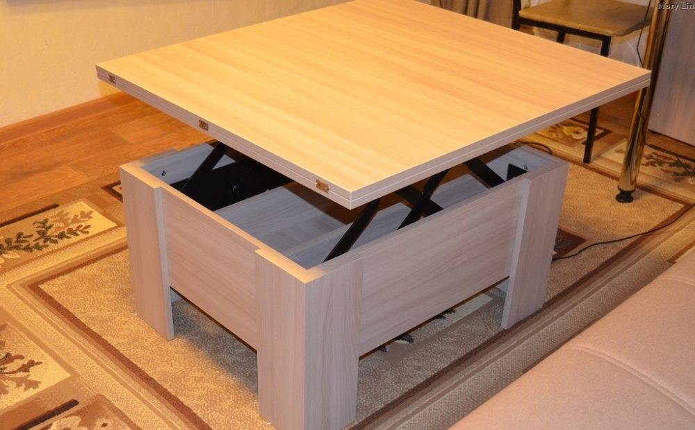 Журнальный столик-трансформер с полкой, нишей, емкостью – очень практичное решение, выполняющее несколько функций одновременно. Данная мебель послужит дополнительным местом для хранения: